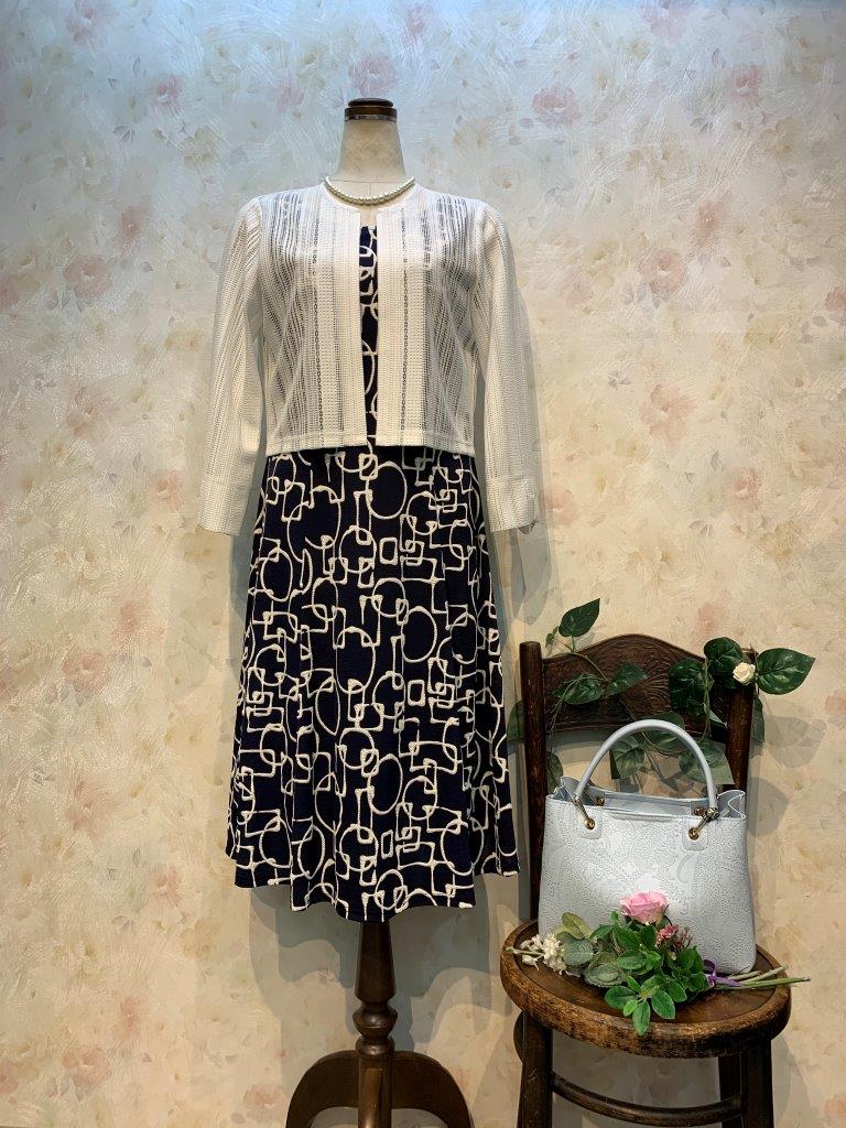 【NEW ARRIVAL】ドレスコードから普段使いまで・・・ 春はビジネスからプライベートまで様々なイベントに何を着ていけばよいのか迷いますね。 ドレスコードがあるとなおさらです… さんちか店へも毎日のように、結婚式、2次会、謝恩会、同窓会、入学入園、お顔合わせ、お宮参り、講演会に発表会、ご旅行にクルーズと本当にいろいろなイベントに着ていかれるお洋服を探しにご来店頂いております。 そこで本日入荷した商品を紹介いたします。 レースプリントワンピース 総レースワンピース リボン付ショール フリルジャケット セットアップガウチョ フリルジャケット Vネックプリントワンピース 綿レースショートカーディガン 伸縮ワンピース(強撚綿) 総ゴムプリーツワンピース