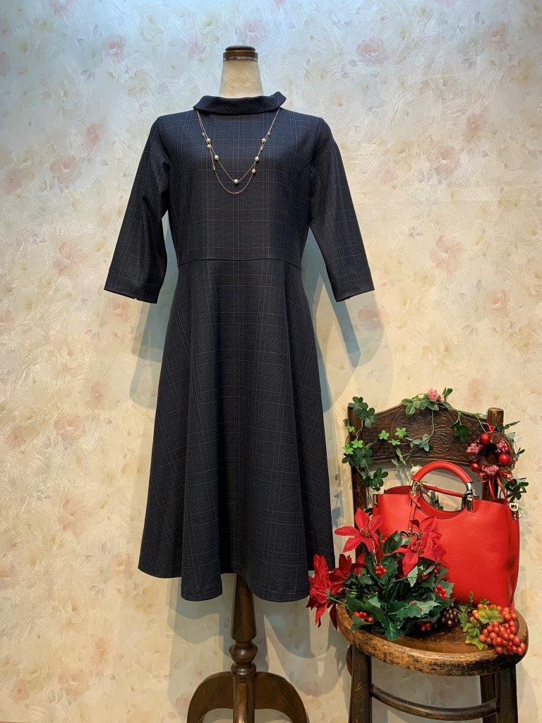 オリジナルワンピース&ジャンパースカート 冬はチェック柄が目を引きますね。 大人気のロールネックワンピースですが、今回は「さんちか店」「くずは店」限定のチェック柄をつくりました。 「コスミカルウォームMVSチェック裏起毛」という生地を使用し、とても伸縮性に富み温かみのあるチェックです。 また、チェック柄のジャンパースカートも入荷しました。 こちらも温かみのある素材のシックで上品なグレンチェックです。ブラウスやニットと合わせて色々なコディネートをお楽しみ頂けます。